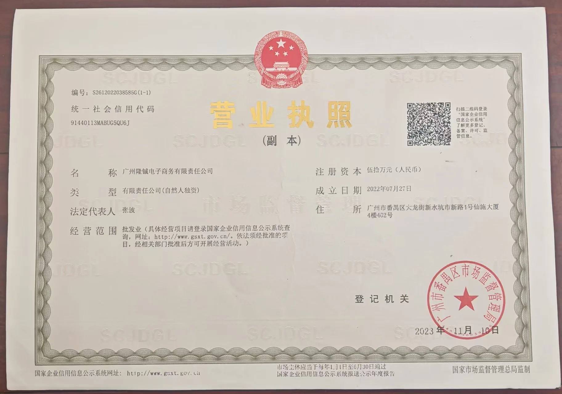 Registered address : No. 402, 4th Floor, Xianshi Building, No. 4 New Road, Xinshuikeng City, Dalong Street Guangzhou Guangdong China